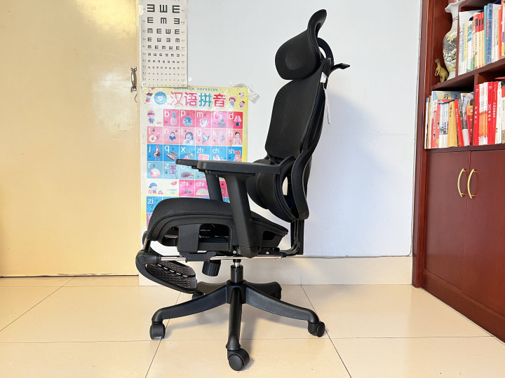 此外,第六代重力联动底盘科技感很强:把机械传导技术融合进安全底盘中,使其富有肌肉感,后仰更顺滑。可以根据体重自动调节后仰反馈力度:体重轻的人更容易后仰,体重重的人起身更轻松,这个设计确实非常人性化。还有腿托的设计:夏草木Fit2的腿托还是隐藏式可伸缩的。通过这个腿部承托延伸系统,打通从头、背、腰、臀、腿的五区联动支撑闭环,实现全身姿态的协同减压。腿托均匀分散大腿与小腿的压力集中点,减少血液淤积、缓解静脉回流负担,大幅提升舒适度。通过躺在上面进行午睡或小憩的体验,感觉可以缓解疲劳的效果非常不错。